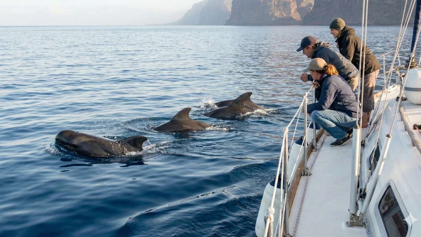 Departing from Puerto Colón, this sailing tour takes you along Tenerife’s stunning coastline, where pilot whales and dolphins can often be seen swimming in their natural habitat.